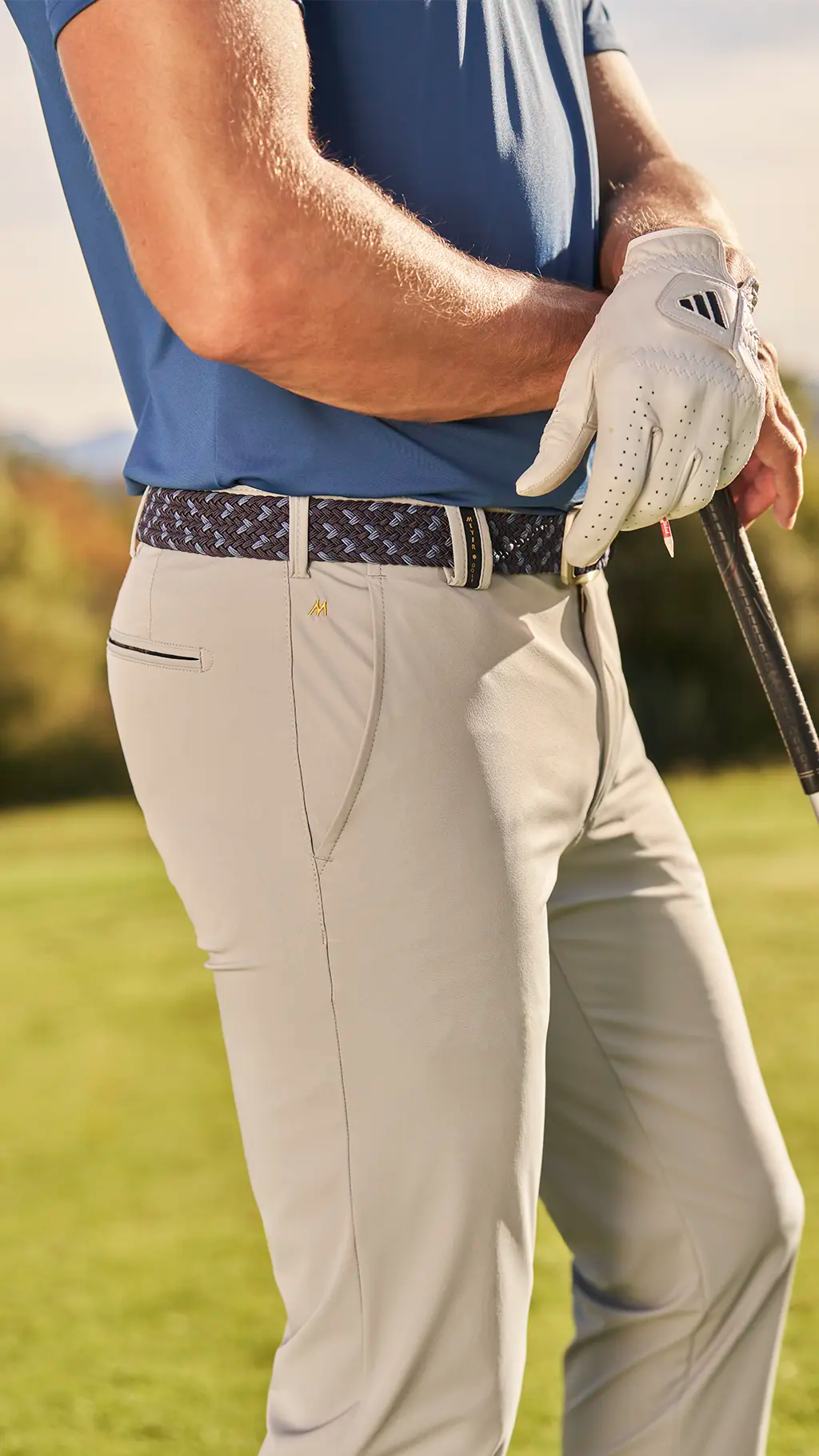 Unsere ausgezeichneten Golfhosen präsentieren sich in modern designten Passformen und eleganten Farben. Semisartorial gefertigte Details spiegeln den exklusiven Charakter dieser Chinos wider: Die silikonbeschichtete Innenseite in den Gesäßtaschen hält Ihren Handschuh an Ort und Stelle und der Hemdenstopper im Bund verhindert, dass Ihr Oberteil verrutscht. Eine hochwertige Innenaustattung mit buntgewebtem Taschenbeutel zeugt von der Sorgfalt, mit der unsere Golfhosen gefertigt werden.