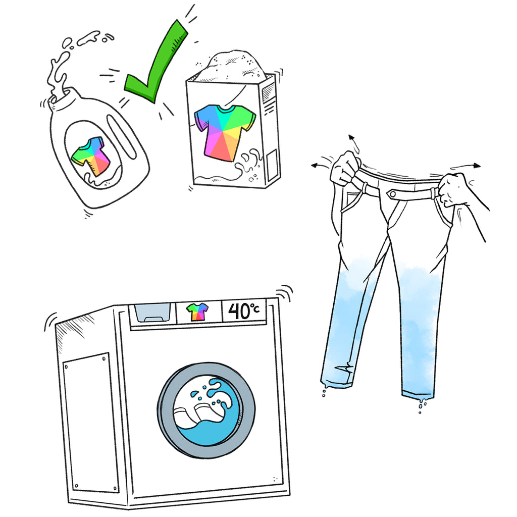 Se possibile, al termine del programma di lavaggio, ti consigliamo di tirare subito fuori i pantaloni dalla lavatrice per evitare alterazioni di colore o scolorimenti.