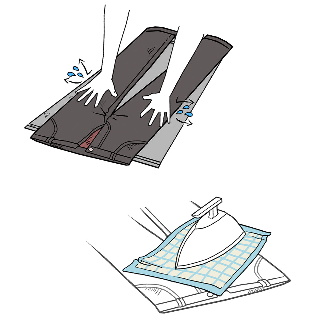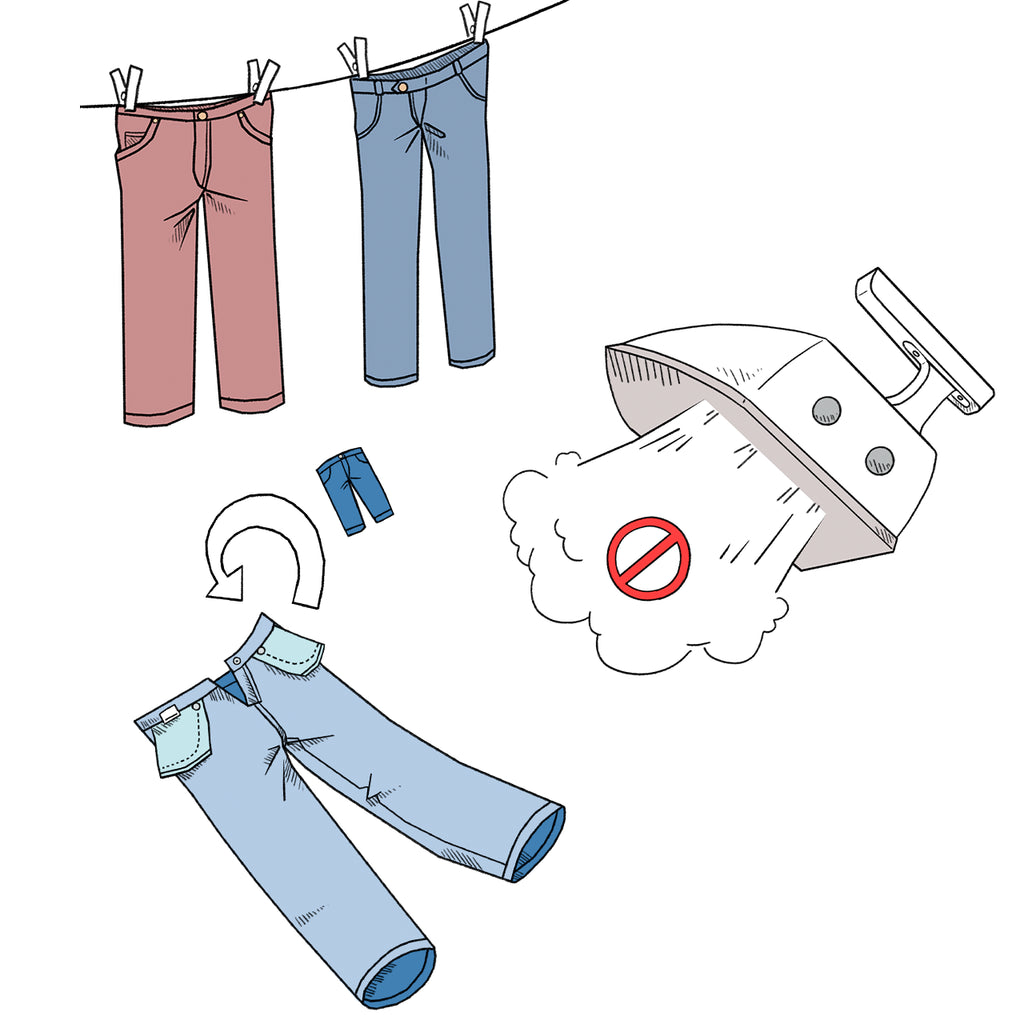 Prima di metterli ad asciugare, scuoti e modella i pantaloni affinché riacquisiscano la loro forma.