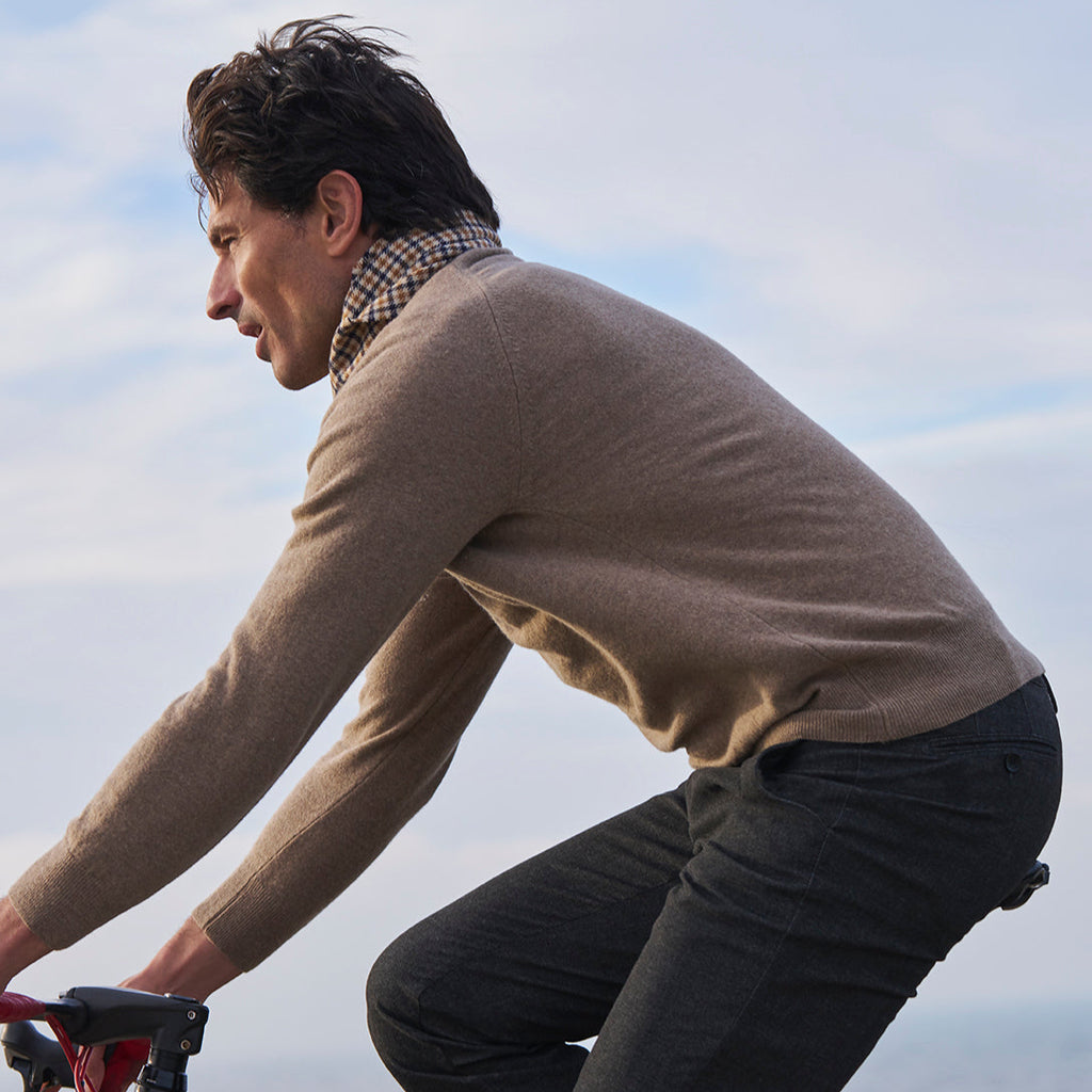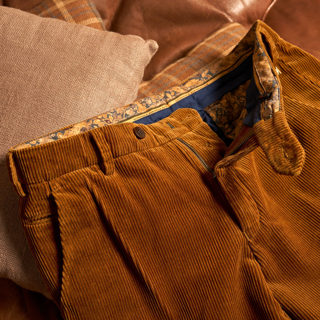 A pair of trousers is made from around sixty cut pieces of fabric, a good 380 meters of yarn, and a few trimmings. Many of the necessary production steps are done by hand. Inspired by the art of bespoke tailoring, we like to refer to this as semi-sartorial quality.